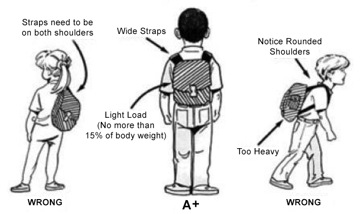 - széles, párnázott, állítható pántokkal (a pántokat minél rövidebbre állítsuk, ne lógassuk fenékig)